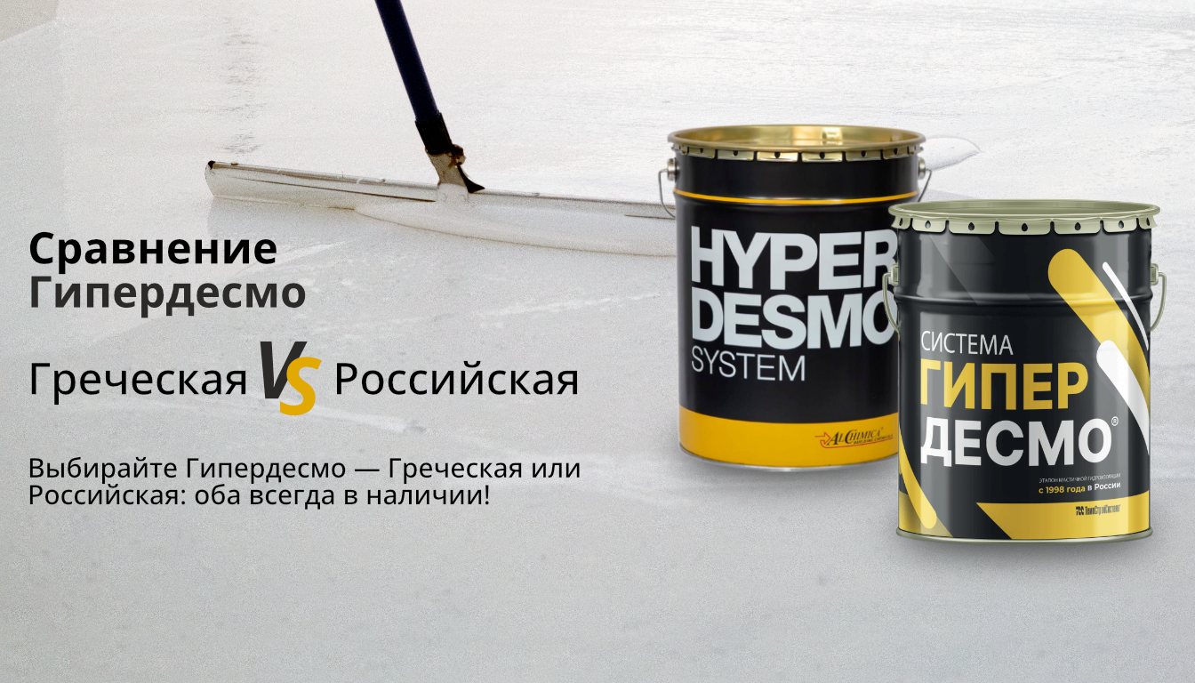 В мире гидроизоляционных материалов название «Гипердесмо» стало нарицательным для эластичных полиуретановых мастик. Однако на рынке представлены два ключевых игрока: греческий материал Hyperdesmo от компании Alchimica и российские аналог с тем же названием Гипердесмо, производимый пионером российского рынка обмазочной гидроизоляции является компания, которая вот уже 30 лет ввозит в страну греческую мастику. Она обладает эксклюзивными правами на эту продукцию в РФ, а её опыт подтверждён десятками тысяч реализованных проектов и миллионами квадратных метров материалов. Эта статья поможет разобраться в их отличиях, сильных и слабых сторонах, чтобы вы могли сделать обоснованный выбор для своего проекта.