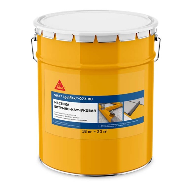 Sika Igolflex-073 - однокомпонентная битум-каучуковая мастика. Применяется для гидроизоляции подземных конструкций - прекрасно зарекомендовала себя на бетонных, цементных и деревянных конструкциях. Может применяться для приклеивания рулонных битумных материалов, в том числе кровельных, гидроизоляционных мембран, пароизоляционных плёнок к большинству строительных оснований (деревянным, цементным, металлическим). Содержит растворитель.