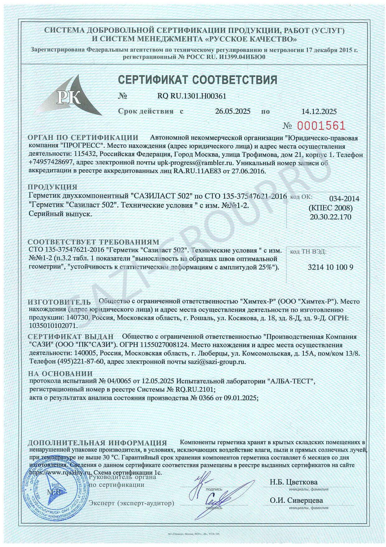 Сазиласт 502 – двухкомпонентный полисульфидный заливочный герметик