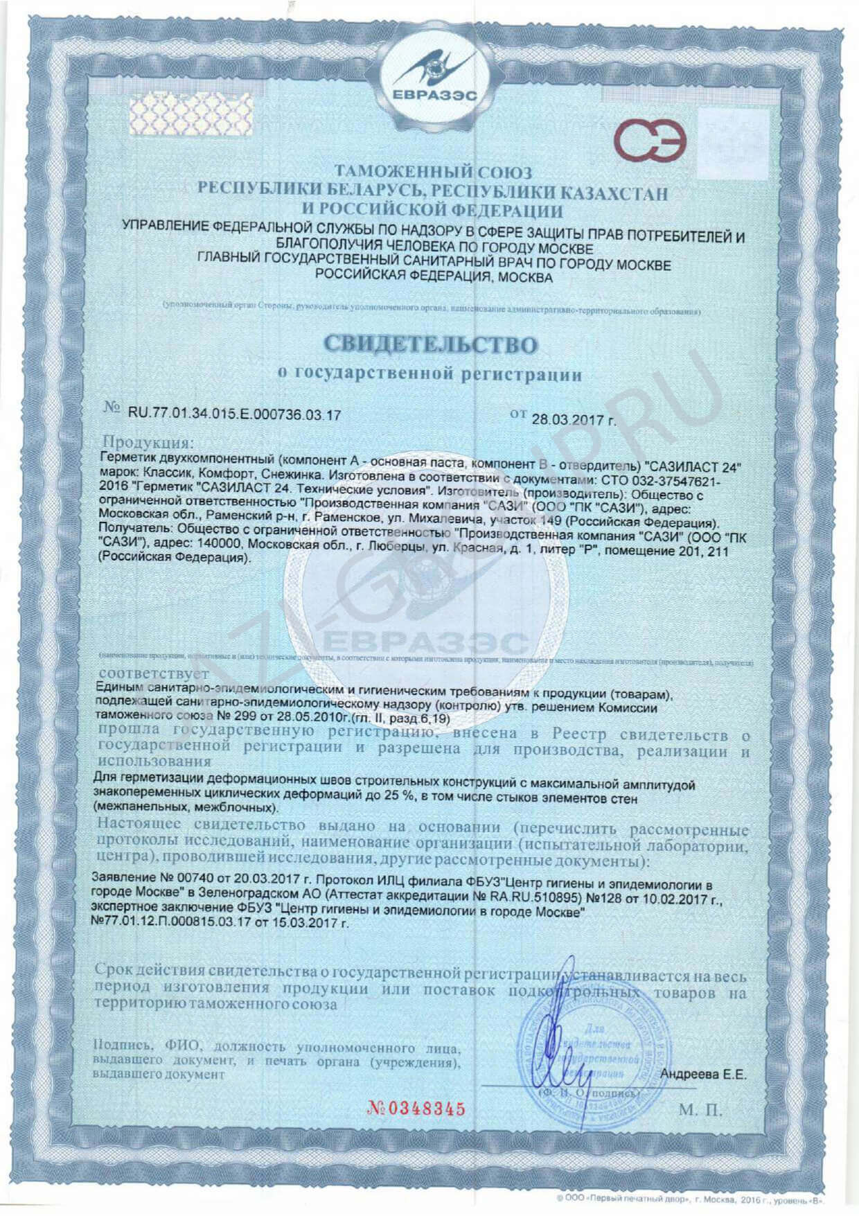 Двухкомпонентный полиуретановый герметик Сазиласт 24 Снежинка