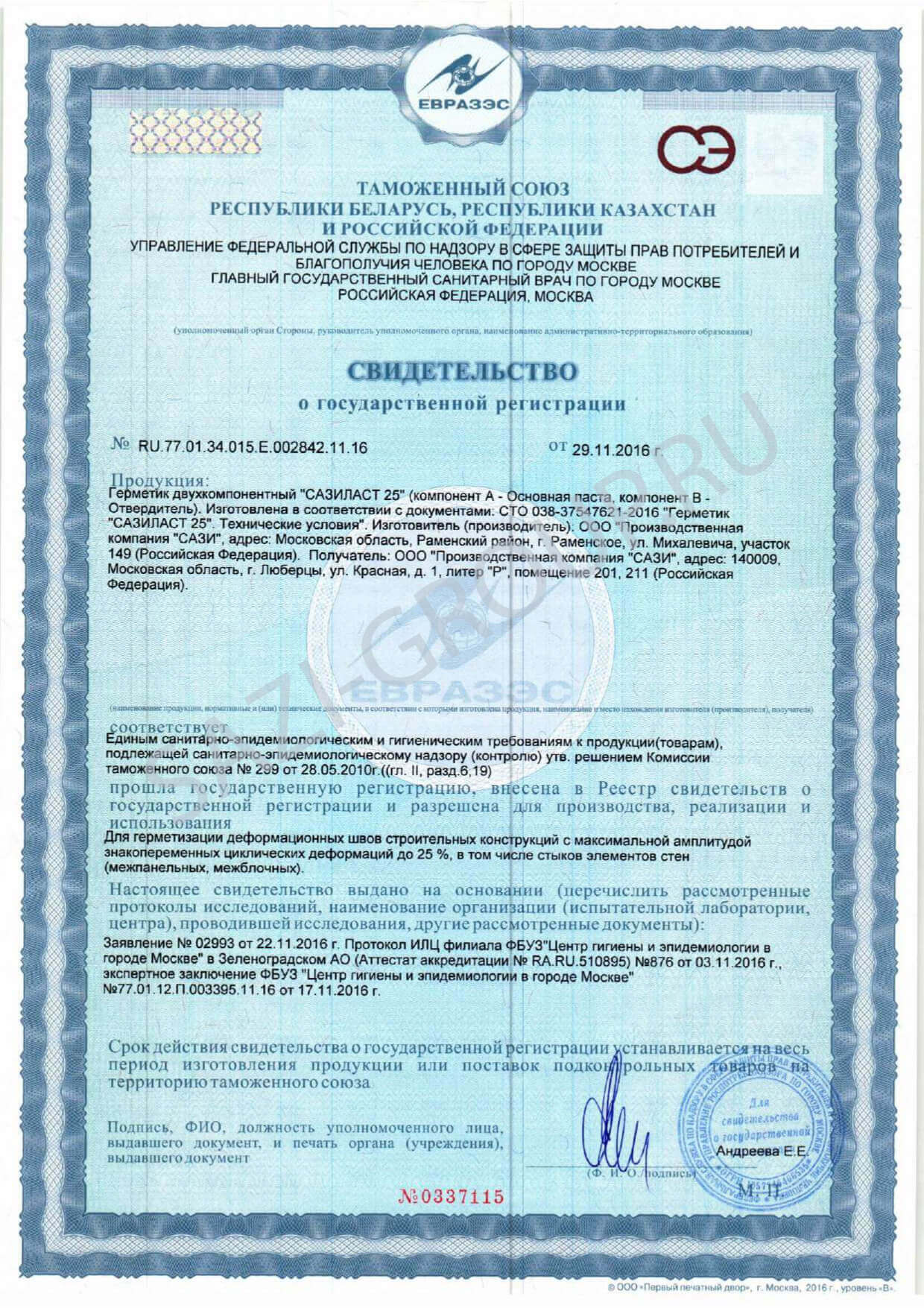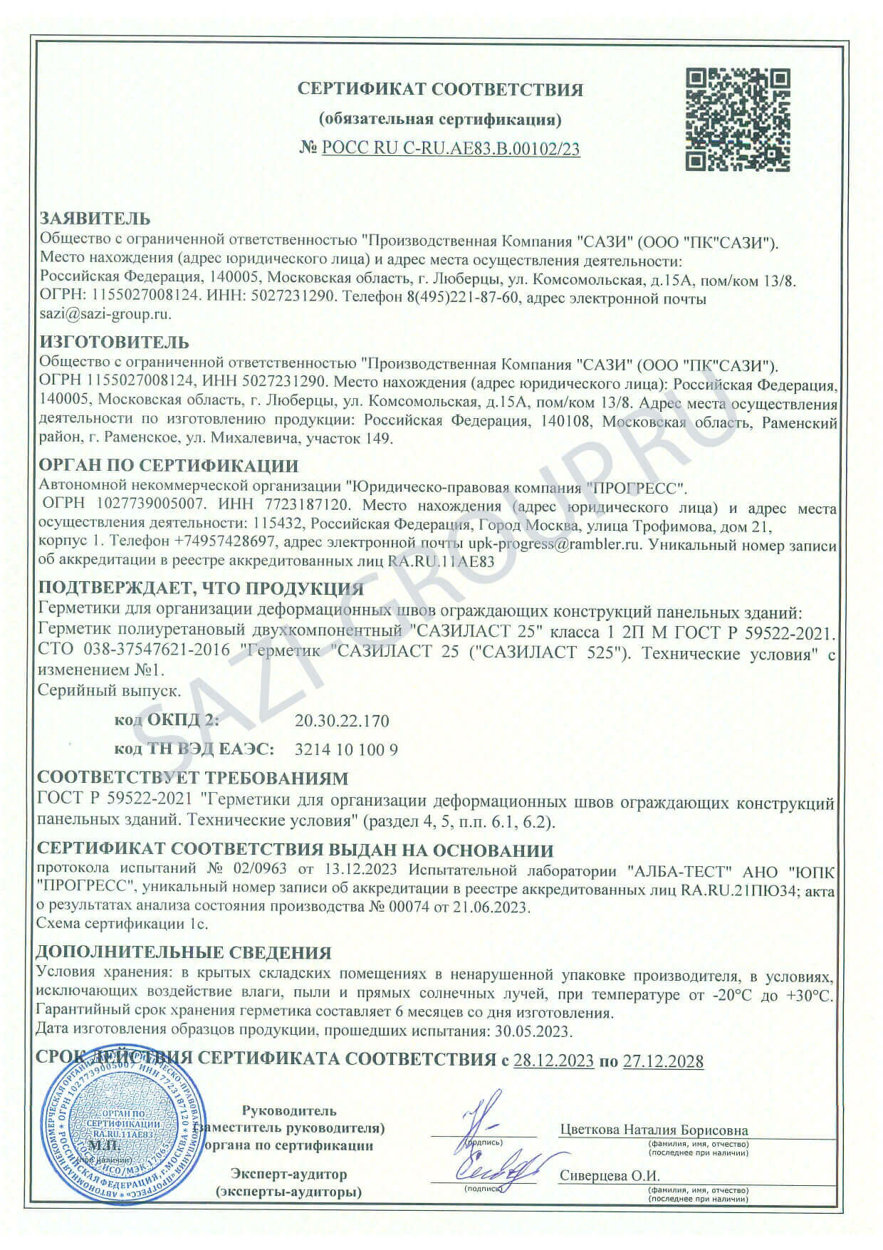 Сазиласт 25 — двухкомпонентный полиуретановый герметик