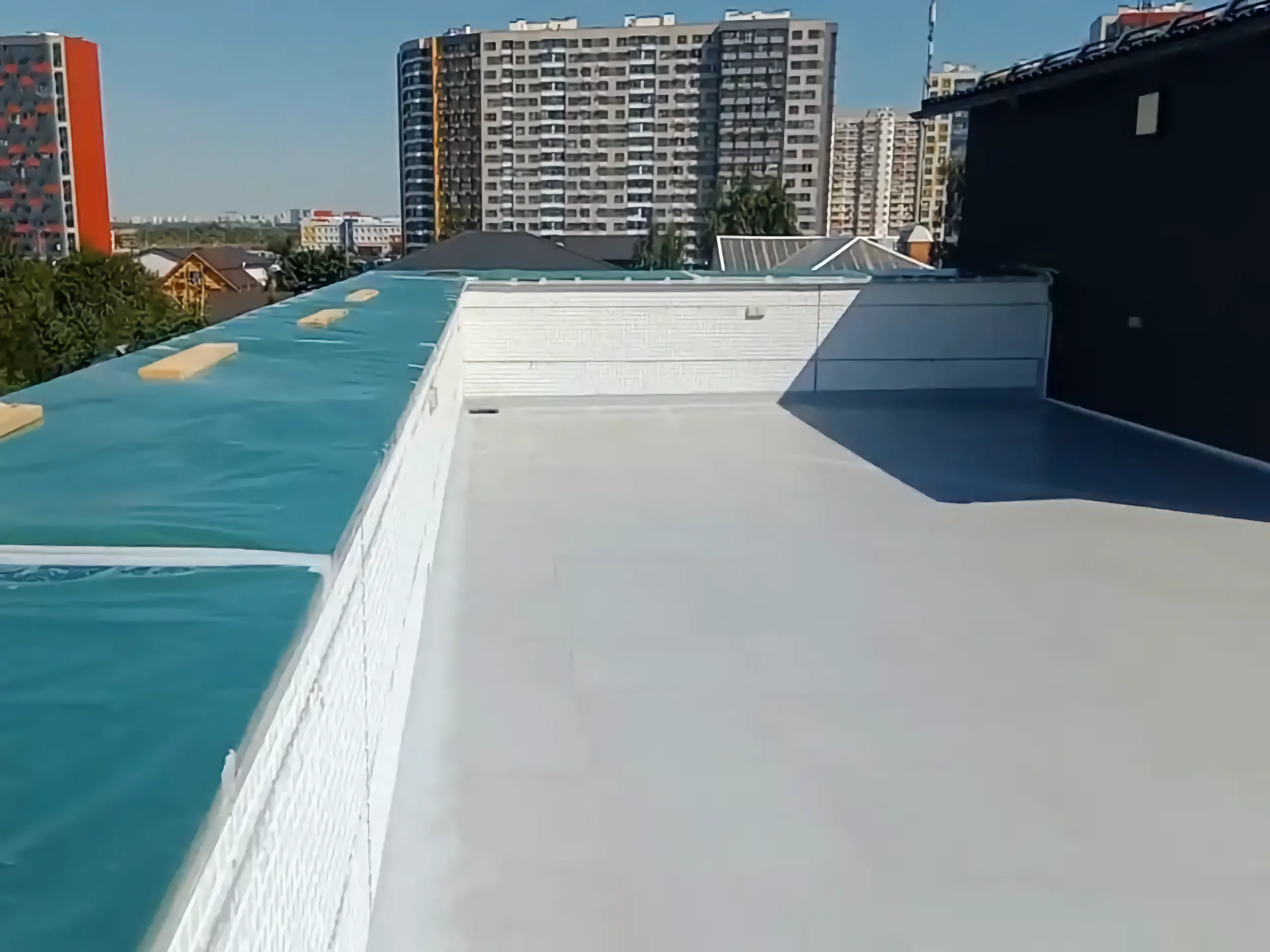 Гидроизоляция по плитке в частной доме с плоской кровлей 200 м²